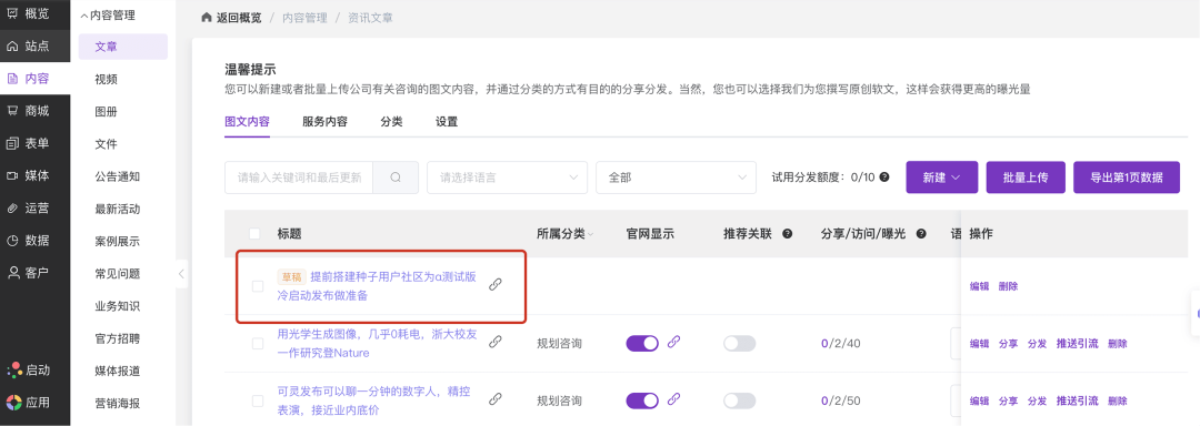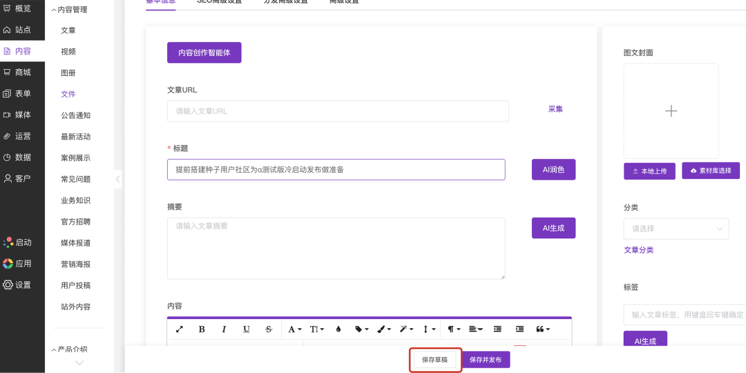 LTD341次升级 | 文章撰写过程自动保存 • 产品/商品/公告等内容添加支持AI润色 • AI自动生成商品标签