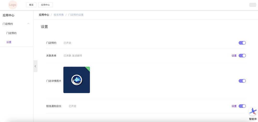 可以设置某个门店的关联表单、详情背景图、以及当有新预约时,是否短信通知店长等设置。